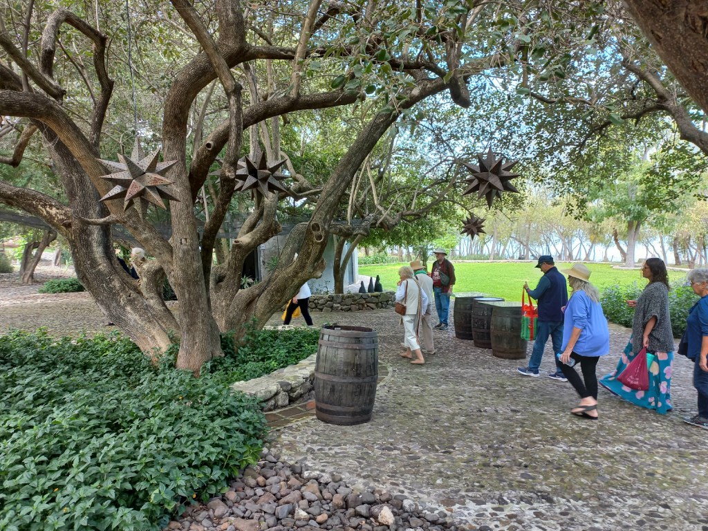 All the INFO you NEED is on this post to book your boat trip, see COMMENTS. Meet up at Ajijic Pier. Whether you sip wine or not, this trip includes a safe ride with Captain Juan on his comfortable, clean, covered Nautilus vessel. Our English speaking guide at the vineyard will answer all gardening questions. For a low cost, you get to get out of routine and enjoy two private, fascinating local tours. Crossing Lake Chapala we discovered a surprising slice of land. The proud Mexican owner, a man of FAITH, had a dream when he visited Germany and traveled along the Rhine river. He purchased the land from a Vintner who lived in Napa, California. The story contains a divine appointment set up by God. With a joyful countenance, he recounts the events in such a way to give all glory and credit to God. The grove also has pecan trees, olive trees, coffee beans, and lavender which flavors the Malbec. The best temperatures to grow vines? Italy, Brazil, Napa and Jalisco, Mexico. Two harvests per year in Chapala. #FincaLaEstramancia