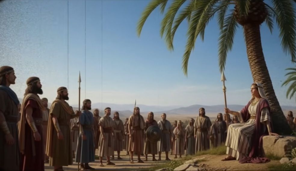 The extraordinary story of Deborah, a rare woman in ancient Israel, defied gender norms by serving as judge, military commander, and worship leader. During a tumultuous period around 1,150 BCE, the Israelites suffered under the oppression of Jabin, king of Canaan, and his formidable general, Sisera, who commanded 900 iron chariots. Deborah was called and equipped by God to lead her people during this crisis. She held court under a palm tree, where people sought wisdom. Her exceptional authority was respected in a male dominated society. When God revealed a military strategy to her, she summoned Barak, a military leader, to rally an army against the firece command of Sisera. Barak, recognized the need for divine guidance, and he insisted that Deborah accompany him into battle, displaying his humility and trust in her prophetic gifts.
