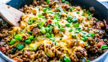 Yeah I live in Mexico and I am enjoying the skinny of being on the KETO lifestyle, but at our casa, on Taco Tuesdays, we make up this ZERO carb Taco skillet and enjoy with bacon rinds for the crunch! SHOP FOR THESE INGREDIENTS: 1 lb lean ground beef 1 large yellow onion, diced 2…
