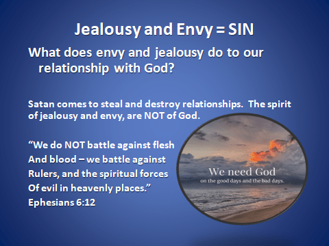 “My people perish for lack of knowledge.” Hosea READ ON to LEARN so that you can DISCERN with wisdom, all the ways that the ENEMY uses jealousy and envy to destroy our relationship with our Father and with others. We must understand that envy, bitterness, adultery and murder are all equal in God’s eyes. Every sin separates us from God. “It is no longer I myself who do it, but it is the sin living in me.” Romans 7:17