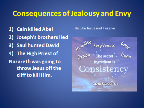 We were all made in God’s image and our Father does NOT make junk. Our Father does NOT have favorites, and He only has good things in store for all of us. Out of His great love, our Father forewarns us about the last days. Sin will be rampant, and the love of God will grow cold because of all of the distractions and traps that Satan sets up for mankind. Jealousy and Envy are a just two fingers of the devil. Both lead us into destruction. “Wide is the road to destruction, narrow is the gate, and few find it.”