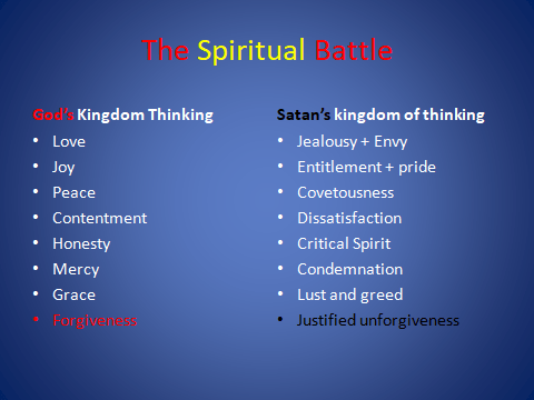 The battle is NOT against the flesh and blood who stand before us. The Spiritual battle is ongoing in the unseen realm of the spirit world, where evil forces are at work to kill and destroy our faith in God.