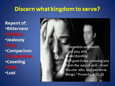 In mankind’s fallen state, it is our nature to act like the devil and covet what others have. Satan’s wickedness is deployed through principalities and powers to place people in bondage. What keeps us from hearing the Holy Spirit? What messes with our discernment between right and wrong? SIN prevents us from close fellowship with the Holy Spirit. The Liar tells us we are justified to feel jealous and angry.